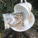 Vintage Teacup and Saucer Bird Feeder with seed – £6.50